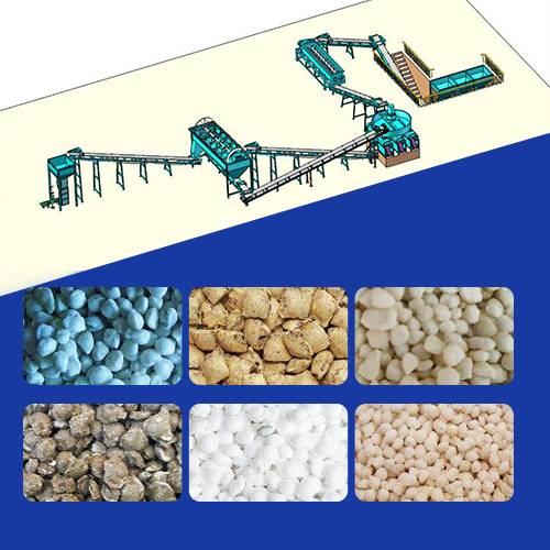 • What’s more, the core of the manufacturing line is the six 1.5T double roller extrusion granulators, which are instrumental in compacting and shaping the NPK fertilizer into granules with different shapes.